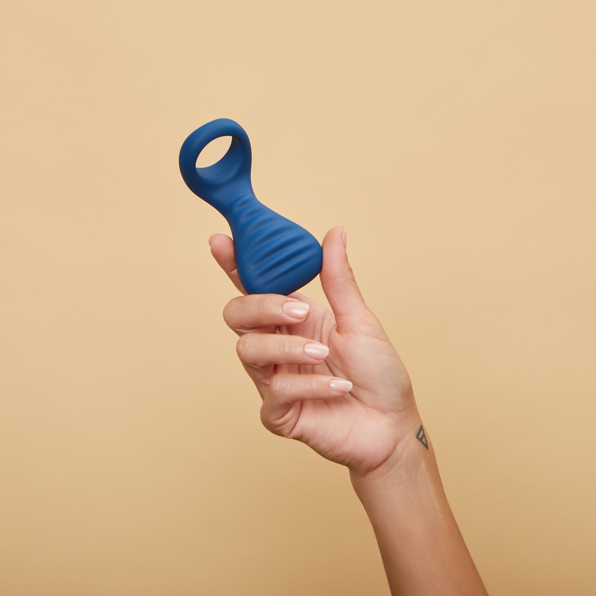 Ohmibod’s Blue Motion Nex|3 is a penis ring whose ridged surface faces outward, vibrating on the clitoris with constant contact. The ring itself keeps the wearer harder, longer, while the vibrating ridges stimulate the partner during face-to-face sex.